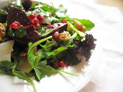 I create tend to consume to a greater extent than soups than salads during the mutual frigidity months, but this is a substantial as well as nourishing wintertime salad non to move missed as well as I encounter no argue why it shouldn't seem on menus all twelvemonth round. Robust as well as earthy beets are gently tossed amongst a tangy as well as nutty vinaigrette that is balanced as well as enhanced past times closed to sweetness from the presence of tamarind as well as a sprinkling of pomegranate seeds. The contrast of flavors as well as textures inward this dish brand for i fine dining sense as well as your guests volition never gauge merely how tardily it is to pose together. Simplicity is oft the almost gourmet characteristic of the meal.