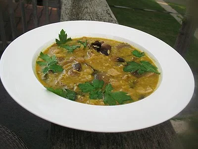 Any combination of mushrooms volition operate fine for this recipe, then role what is easily available. You may role canned kokosnoot milk, simply hither my favorite method of soaking dried kokosnoot as well as draining it makes for an specially appealing as well as fragrant broth that stimulates the palate. Use your ain homemade greenish curry paste if possible every bit pre-prepared commercial varieties constitute at your local grocer pale inwards comparison.